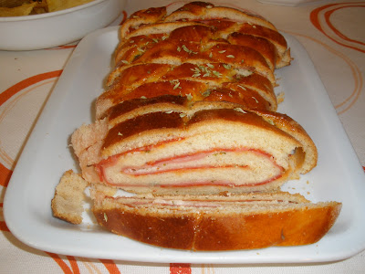 Esta bola foi outra experiência bem sucedida! Bem recheadinha das mais variadas carnes já ficou adotada cá por casa. A inspiração veio do Sabor Intenso.